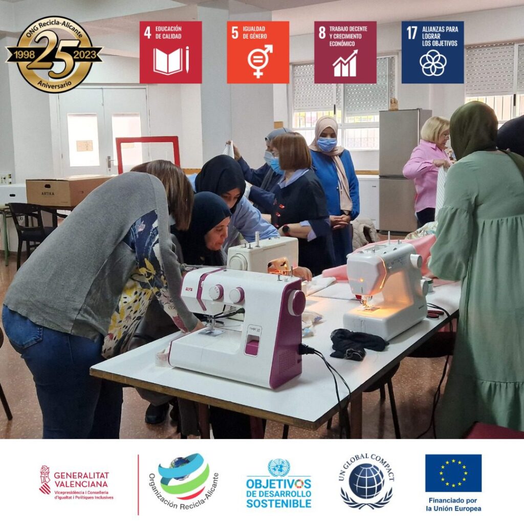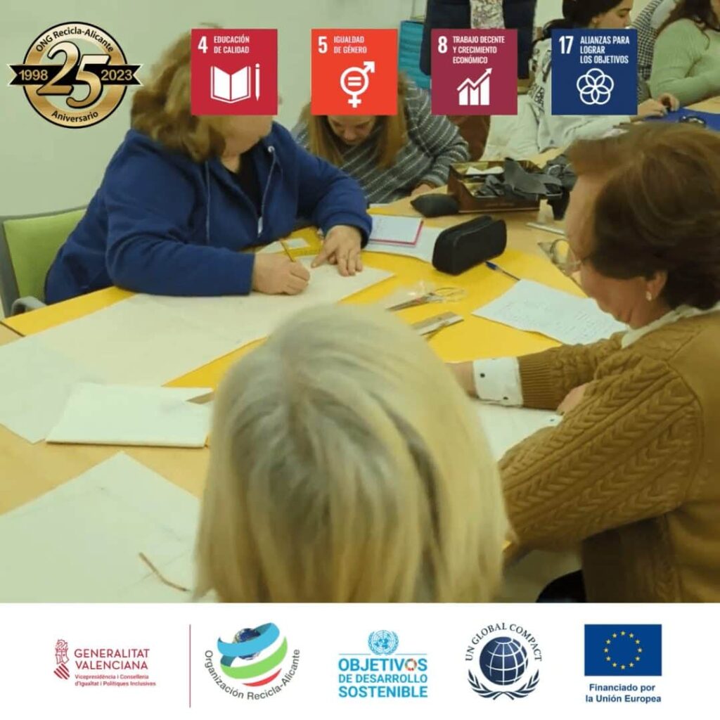En nuestro taller de patronaje y moda de Rafal, nuestras usuarias aprenden a diseñar y confeccionar sus propias prendas mientras